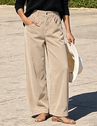 Per donna Pantaloni Pantaloni in velluto a coste Pantaloni casual Pantaloni Estivi Vacanza Moda Casual Quotidiano Lunghezza intera Vita Alta Tinta unica Semplice Tasca Fascia Elastica Comodit