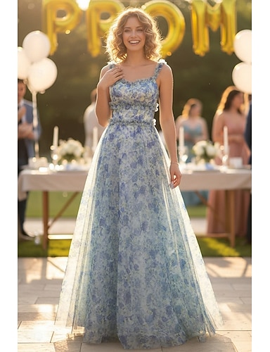 Linea ad A Lunghezza al pavimento Abiti da Ballo Festa Floreale Senza Maniche Spalline sottili Balli di fine anno Formale Gessato con Stampa floreale