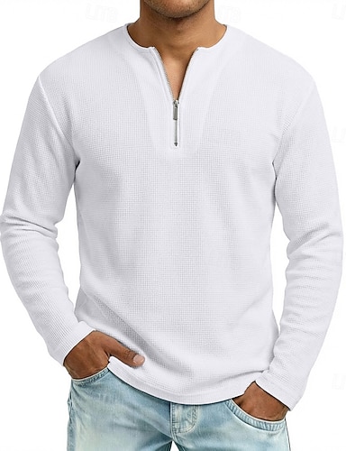 Per uomo Maglietta Waffle Maglietta Manica Lunga Zip a un quarto Primavera Autunno Tutte le stagioni Tinta unica Semplice Testurizzato Quotidiano Retrò Casual Con zip Casuale All'aperto Streetwear