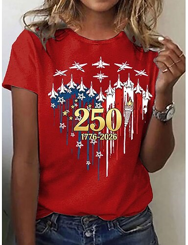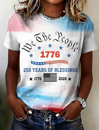 T-shirt patriottica per donne del Giorno dell'Indipendenza anniversario americano 250° stampa grafica bandiera lettera elegante classica casual maniche corte collo rotondo top regolari quotidiani