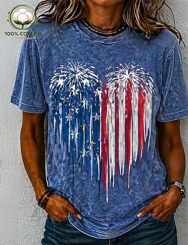 T-shirt da donna in 100% cotone per il giorno dell'indipendenza americana stampa grafica bandiera elegante basic classica a maniche corte girocollo girocollo regolare top casual quotidiani blu nero