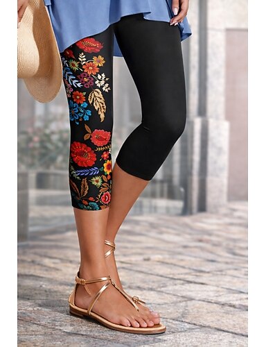 Per donna Chinos Leggings Vacanza Vintage Streetwear Capri Vita Alta Floreale Grafico Stampa Comodità Morbido Confortevole Elasticizzato Quotidiano All'aperto Vacanza Nero Estate Primavera Autunno