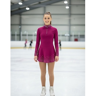 Vestito da pattinaggio artistico Per donna Da ragazza Pattinaggio sul ghiaccio Vestiti Viola Collage Foro per pollice Retato Elastene Elasticizzato Addestramento Da allenamento Professionale Vestiti