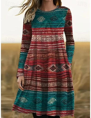 Per donna Abito Midi Abito a Tubino Vacanza Casual Uscire Vestibilità regolare Grafico Paisley Manica Lunga Scollo a V Nero Rosso Marrone chiaro Verde Autunno Inverno