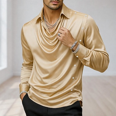 Per uomo Camicia Come la seta Camicia in raso Camicia casual Semplice Quotidiano Vacanza Nero Vino Blu marino Oro Manica Lunga Scollo a Cascata Primavera Primavera & Autunno Abbigliamento Arricciato