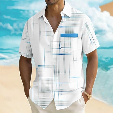 Per uomo Geometrico Sfumatura Linea Camicia Camicia Estiva Camicia con Bottoni Manica Corta Business Casual Quotidiano Lavoro Ferie Estate Primavera Collo ripiegato Stampa 3D Una tasca anteriore