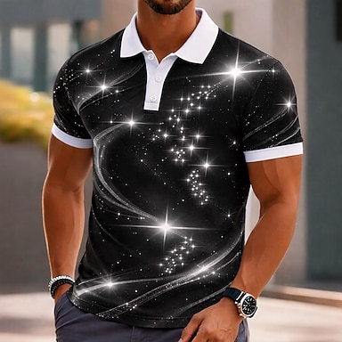 Per uomo Galassia Polo Manica Corta Magliette polo Camicie con Colletto Casual Athleisure Bottoni Primavera & Estate Blu Nero Viola