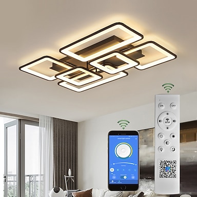 Plafoniera a led da 90 cm Lampada da soffitto moderna da 120 W Lampadario quadrato nero acrilico a 6 quadrati utilizzato per lampada da soffitto incorporata nella cucina del soggiorno della sala da