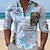 Per uomo Blocco di colori Albero di Cocco Bandiera Americana Camicia Camicie hawaiane Camicia con colletto alla coreana Manica Lunga Hawaiano Vintage Retrò Casuale Vacanza Primavera Autunno Collo