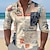 Per uomo Renna Bandiera Americana Camicia Camicia con Bottoni Manica Lunga Vintage Retrò All'aperto Campeggio & Escursionismo Caccia Primavera Autunno Collo ripiegato Stampa 3D Camicia tipo lino Cachi