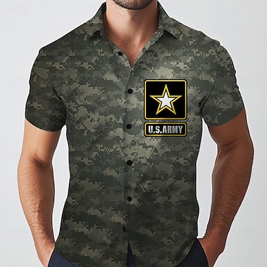 Camicetta mimetica per veterani militari uomo camicia casual camicia button-up maniche corte moda militare vacanza all'aperto streetwear estate primavera collo a ribalta camicie con stampa 3D