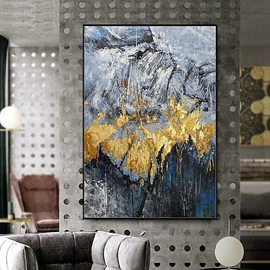 pittura a olio fatta a mano su tela decorazione della parete astratta foglia d'oro pittura blu oceano per la decorazione domestica arrotolato senza cornice pittura non stirata