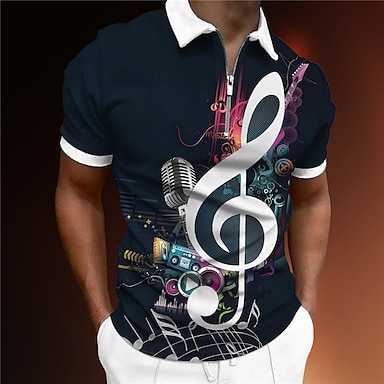 Festival musicale Per uomo Musica Polo con zip Maglia da golf Manica Corta Magliette polo Camicie con Colletto Casual Abbigliamento da vacanza Abbigliamento da festa Abiti da festa Stampa 3D Polo con