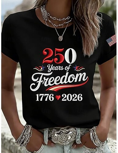 Giorno dell'Indipendenza Americana Per donna Maglietta Stampato Grafico Lettera Bandiera Americana Elegante Classico Casual Manica Corta Girocollo Top Regolari Quotidiano Blu Nero Bianco Rosa Rosso