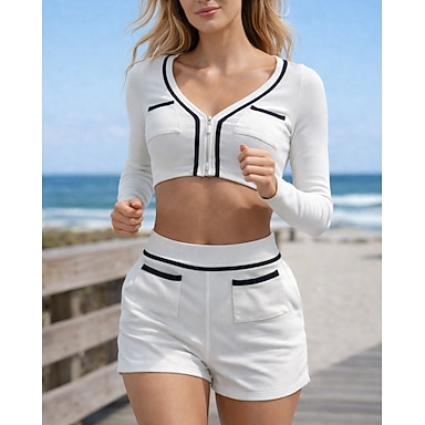 Per donna Tuta da 2 pezzi Tute in maglia Abiti da salotto Con zip con tasca Blocco di colori Set di Abbigliamento Sportivo Estate Primavera Bianco Allenamento in Palestra Jogging Corsa Traspirante