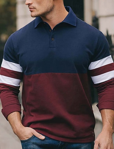 Per uomo A righe Polo da rugby Manica Lunga Magliette polo Camicie con Colletto Casual Scuola All'aperto Athleisure Stampa 3D Primavera Autunno Inverno Rosso Blu Arancione