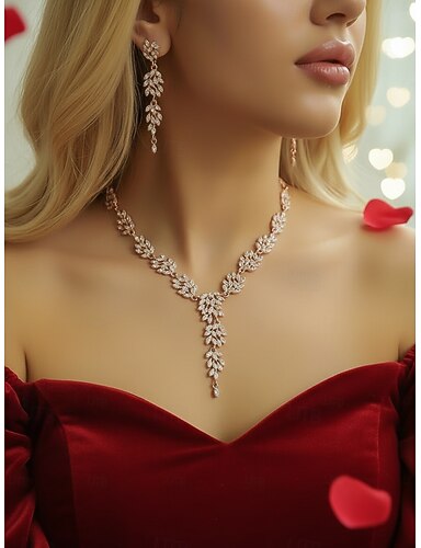 set di collana e orecchini a foglia con strass dorati da donna: eleganti gioielli scintillanti per feste e serate
