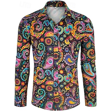 Retrò Vintage Anni '70 Camicia Hippie Paisley Costume Per uomo Feste Abbigliamento quotidiano Parata dell'Orgoglio Adulti Camicia