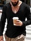 Per uomo Maglietta Waffle Manica Lunga Scollo a V Bavero Autunno Primavera & Autunno Tinta unica Moda Essenziale Casual Blocco di colore Streetwear Casuale Sportivo Nero Blu marino Kaki Maglietta Top