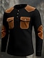 Per uomo Maglietta Maglia Henley a nido d'ape Manica Lunga Henley Autunno Autunno & Inverno Blocco di colori Retrò Vintage Henley Tasche Bottoni All'aperto Casuale Nero Grigio Kaki Maglietta Top per