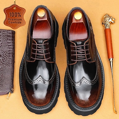 scarpe oxford da uomo in pelle di vacchetta di prima qualità - scarpe eleganti brogue vintage con lacci e intricati dettagli incisi per occasioni formali