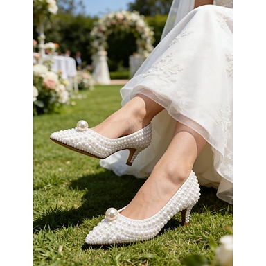 Per donna scarpe da sposa Scarpe bianche Scarpe da sera Matrimonio Feste Floreale Colore a contrasto tacchi da sposa Scarpe da sposa Scarpe da damigella d'onore Perle di imitazione Perline Basso A