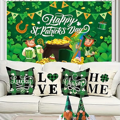 sfondo per il giorno di San Patrizio, bandiera irlandese con trifogli, arazzo da parete, forniture per feste per il giorno di San Patrizio, sfondo per la celebrazione della birra verde per cabina