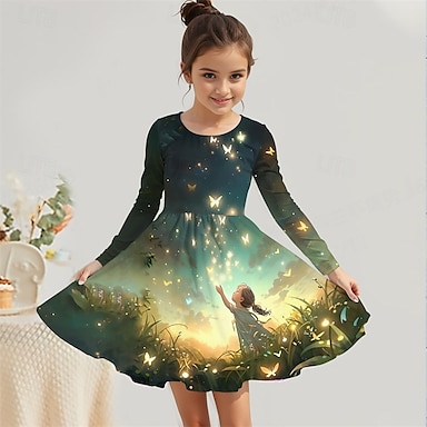 ragazze' 3D Farfalla Abito Manica Lunga Estate Primavera Vacanza Quotidiano Ferie Principessa Bello Dolce Bambini 4-12 Anni Vestito Casual Abito a trapezio Lunghezza al ginocchio Vestibilità regolare