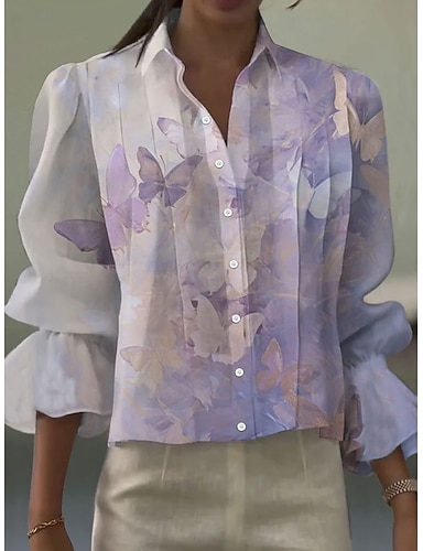 Per donna Blusa Volant Stampato Floreale Grafico Vintage Quotidiano Elegante Manica 3/4 Scollo a V Top corti Quotidiano Ferie Abbigliamento da vacanza Blu Rosa Viola Verde Estate Primavera