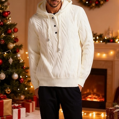 Per uomo Maglione di Natale Maglioni di Natale Maglione per le feste Maglione Maglione a maglia A Coste Maglia Top Regolari Bottoni Lavorato a maglia Semplice Con Cappuccio Moda Essenziale Vacanza