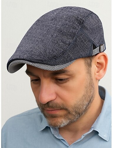 berretto piatto in lino regolabile da uomo, cappello da strillone leggero e traspirante con dettagli a righe, stile berretto d'edera vintage per uscite casual e uso quotidiano