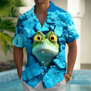 Per uomo Animale Rana Lucertola Camicia hawaiana estiva Camicia con Bottoni Camicia Aloha Manica Corta Hawaiano Vacanza al Mare Estate Primavera Collo ripiegato Stampa 3D camicie con colletto Una