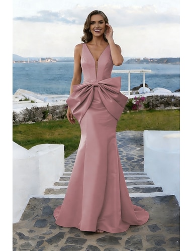 Sirena Tromba Strascico a Terra Lunghezza al pavimento Vestito da Festa Abito Formale Abiti da Ballo Abito da Sera Da principessa Abito formale Elegante Senza Maniche Scollo a V Matrimonio Formale con