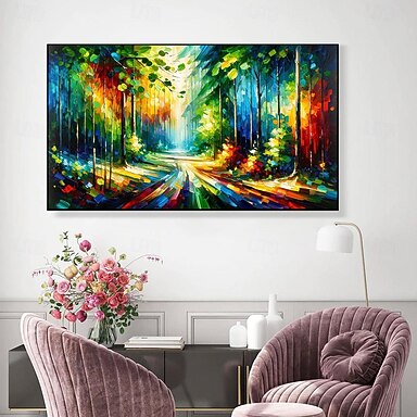 dipinto a mano originale foresta verde dipinto a olio su tela paesaggio astratto albero arte murale per arredamento casa con cornice tesa/senza cornice interna pittura