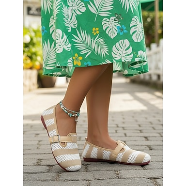 Scarpe Mary Jane da donna larghe e traspiranti in maglia color cachi - scarpe casual leggere e comode, con cinturino regolabile per camminare, viaggiare, lavorare, fare shopping, andare in vacanza