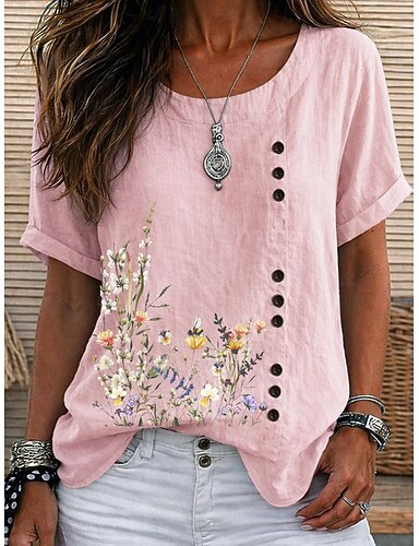 Per donna Blusa Bottoni Floreale Grafico Elegante Vintage Quotidiano Manica Corta Girocollo Top Regolari Casuale Quotidiano Ferie Blu Verde primavera Bianco Giallo Rosa Estate Primavera