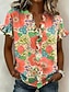 Per donna Camicia Tunica Volant Floreale Grafico Elegante Vintage Moda Manica Corta Scollo a V Top Regolari Casuale Quotidiano Blu Rosa Arancione Verde Estate Primavera