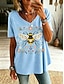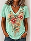 Per donna Maglietta Stampato Floreale Grafico Api Elegante Classico Casual Manica Corta Scollo a V Top Regolari Casuale Quotidiano Blu Nero Viola Verde Cachi Estate Primavera