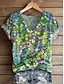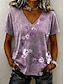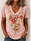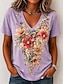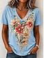 Per donna Maglietta Stampato Grafico Piante Elegante Classico Casual Manica Corta Scollo a V Top Regolari Casuale Quotidiano Blu Beige chiaro Viola chiaro Viola Verde Estate Primavera