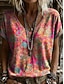 Per donna Camicia Stampato Floreale Grafico Vintage Elegante Moderno Manica Corta Scollo a V Collo alla coreana Top Regolari Casuale Quotidiano Blu Rosa Viola Verde Estate Primavera