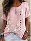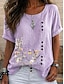 Per donna Maglietta Stampato Floreale Grafico Piante Moda Elegante Classico Manica Corta Girocollo Top lunghi Casuale Quotidiano Weekend Viola / Blu Verde salvia Giallo Blu turchese Grigio scuro