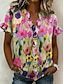 Per donna Camicia Bottoni Stampato Floreale Grafico Piante Elegante Classico Casual Manica Corta Scollo a V Top lunghi Casuale Quotidiano Uscire Viola / Blu Verde Estate Primavera