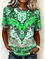 Per donna Maglietta Stampato Floreale Grafico Tribale Elegante Classico Casual Manica Corta Scollo a V Top lunghi Casuale Quotidiano Verde salvia Viola Arancione Estate Primavera