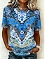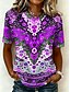Per donna Maglietta Stampato Grafico Tribale Elegante Classico Casual Manica Corta Scollo a V Top Regolari Casuale Quotidiano Blu Viola / Blu Verde salvia Rosso Arancione Estate Primavera