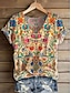 Per donna Maglietta Stampato Floreale Grafico Tribale Elegante Classico Casual Manica Corta Scollo a V Top Regolari Casuale Quotidiano Blu Giallo Rosso Arancione Verde Estate Primavera