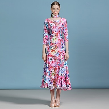 Balli da Sala Vestito Stampa floreale Pieghe Per donna Feste Allenamento Performance Manica 3/4 Alto Elastene