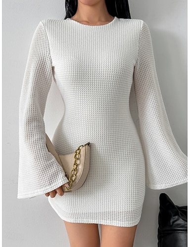 Per donna Mini Abito Abito Bianco Abito da laurea Abito aderente Elegante Moda Moderno Manica del polsino svasato All'aperto Vacanza Uscire Vestibilità regolare Semplice Manica Lunga Girocollo Nero