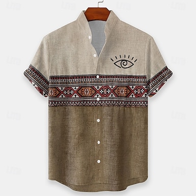 Per uomo Stile Boho Occhi Etnico Camicia Camicia con Bottoni Camicia con colletto alla coreana Manica Corta Vintage Retrò Vacanza Abbigliamento Quotidiano Abbigliamento mare Estate Primavera Collo