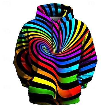 Per uomo Illusione ottica 3D Felpa con Cappuccio Felpa Etnico Cowboy Manica Lunga Girocollo Abbigliamento casual alla moda Nero Bianco Coulisse Autunno Inverno progettista S M L XL XXL XXXL