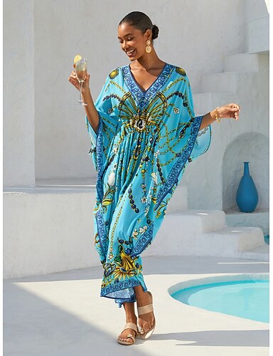 Abito lungo blu in chiffon svolazzante con maniche a pipistrello, Isole Baleari